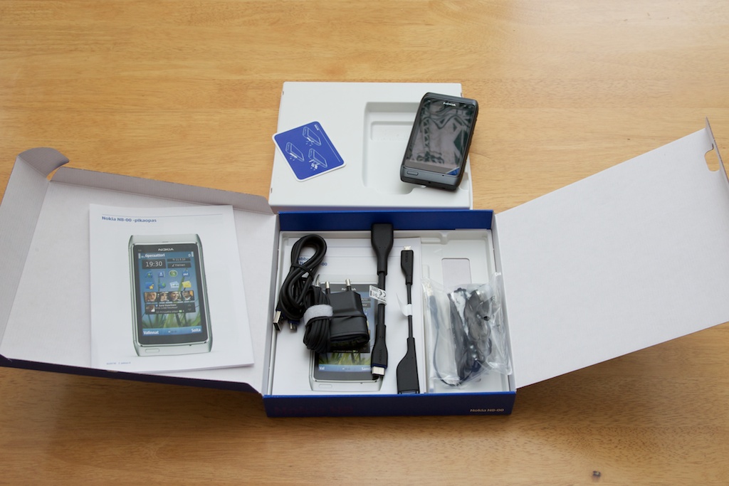 Kun paketin saa käteen tulee mieleen Communicator E90 -paketti, ja siihen verrattuna paketti on pienentynyt. Pakkaus on kompakti ja siisti: päällimmäisenä pelkkä laite, valkoisen ympärystäkotelon alla on kaikki muu:
